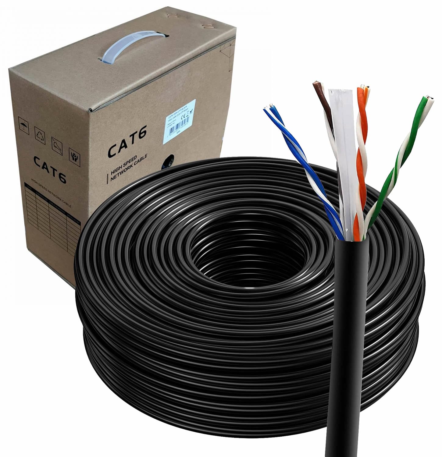 100-meter length of high-quality indoor/outdoor Cat6 UTP network cable. Features a durable jacket to withstand environmental elements while delivering high-speed data transfer.